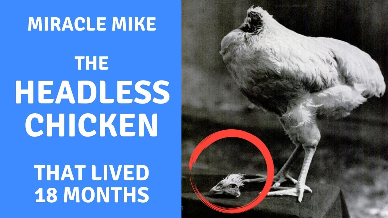In September 1945, farmer Lloyd Olsen tried to kill a chicken named Mike to eat for dinner. His ax missed the chicken's jugular vein and most of its brain stem, so Mike remained alive. For 18 months the farmer fed it a mixture of milk and water using an eyedropper and toured with the chicken across the United States.